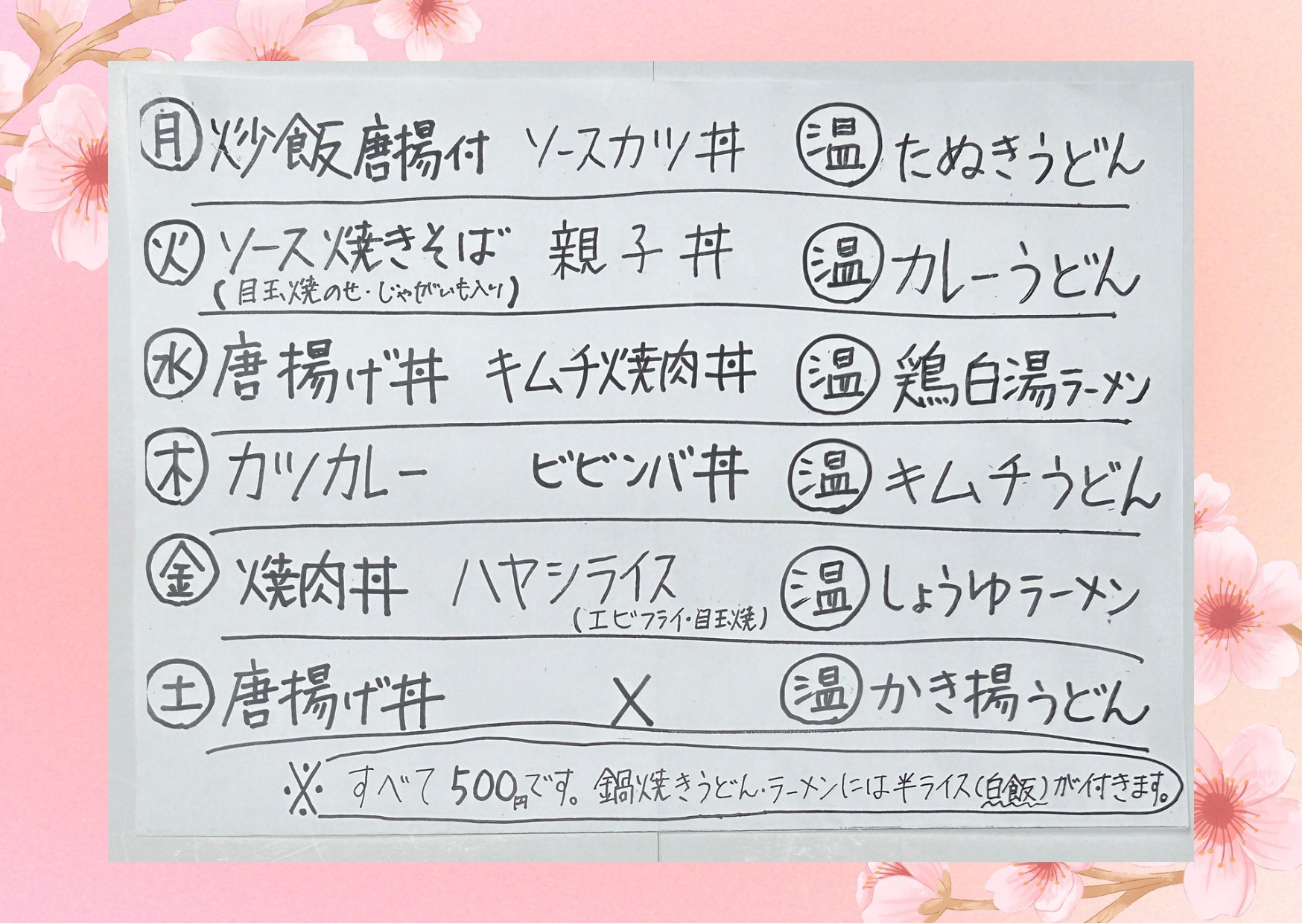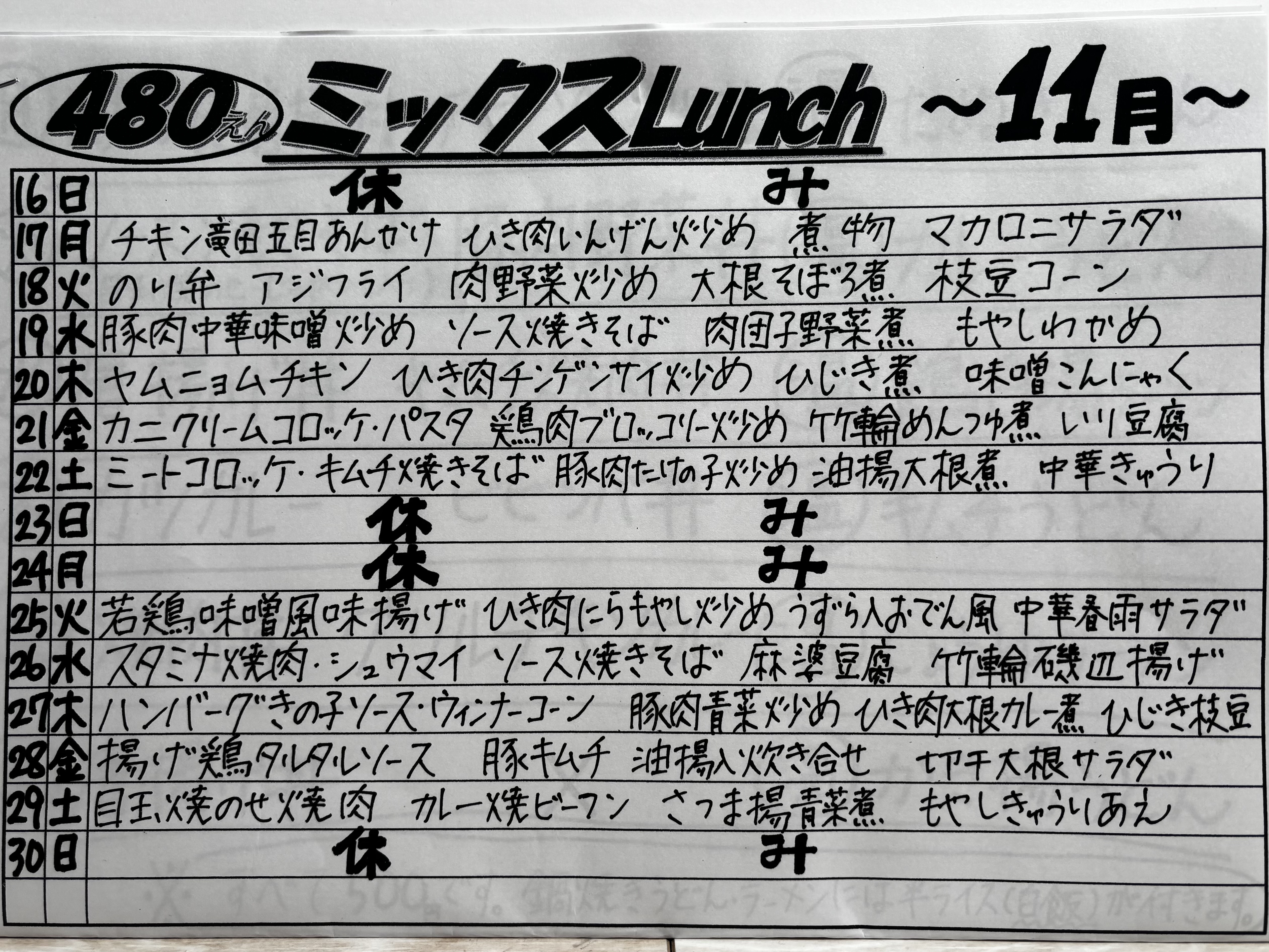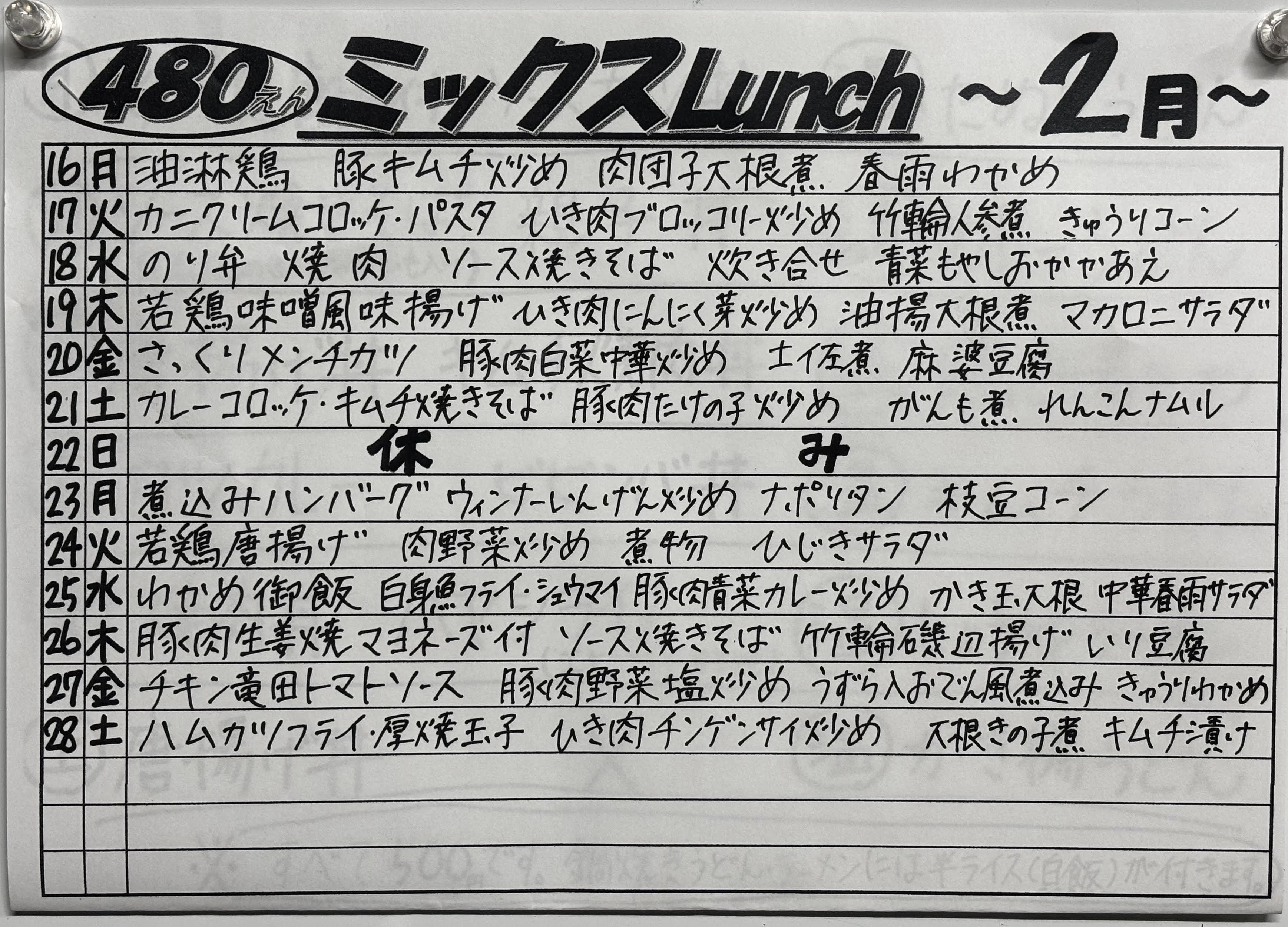 色々なお知らせです ・ミックスLunchは大盛り無料です ・配達の都合上、ご注文はAM 10:00(栃木市以外はAM 9:30)までにお願いいたします ・メニューは仕入れの状況により予告なく変更する場合がございます。ご了承ください